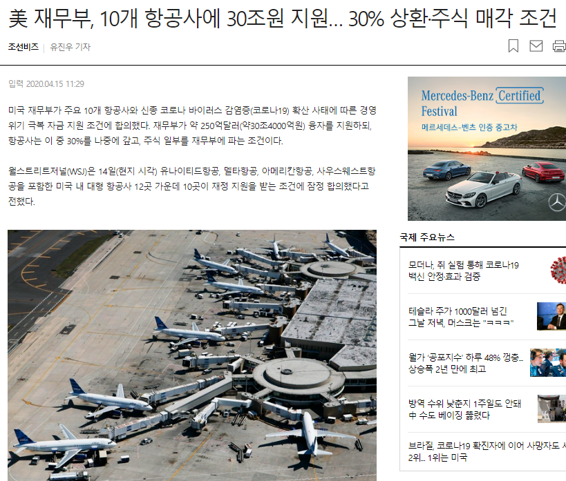 앞에서 살펴본 것처럼 보잉은 자체적으로 생존할 수 있는 자금을 모집했습니다. 미국항공사들이 대규모 정부지원을 받으면서 "미국 정부가 지분확보" "고용 유지" "주주환원정책 제한" 등 제한이 있는 것에 비해 보잉은 자유롭습니다.
