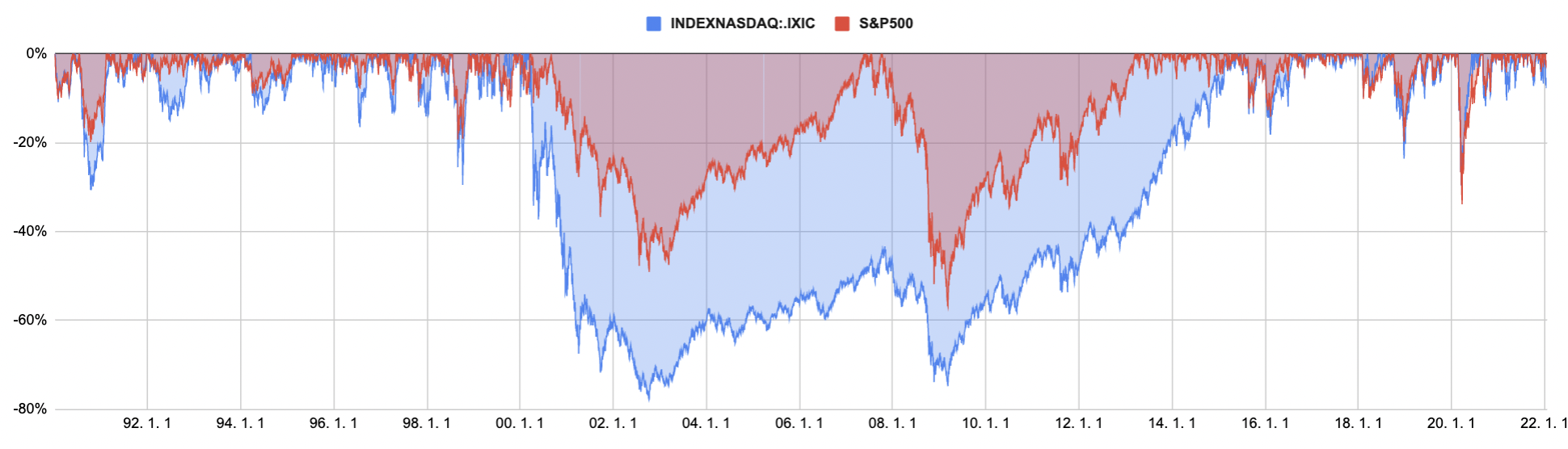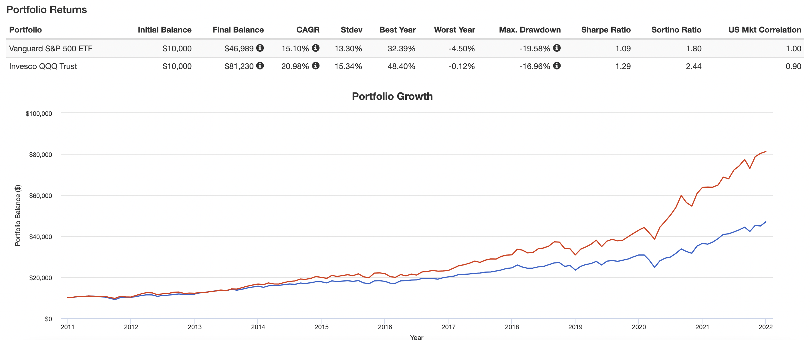 특히 나스닥ETF의 투자비중이 커질수록 포트폴리오의 변동성 역시 커질 확률이 높기 때문이죠. 아무래도 기술주 단일섹터에 대한 지수다보니 S&P500에 비해서 변동폭이 클 수 밖에 없습니다.