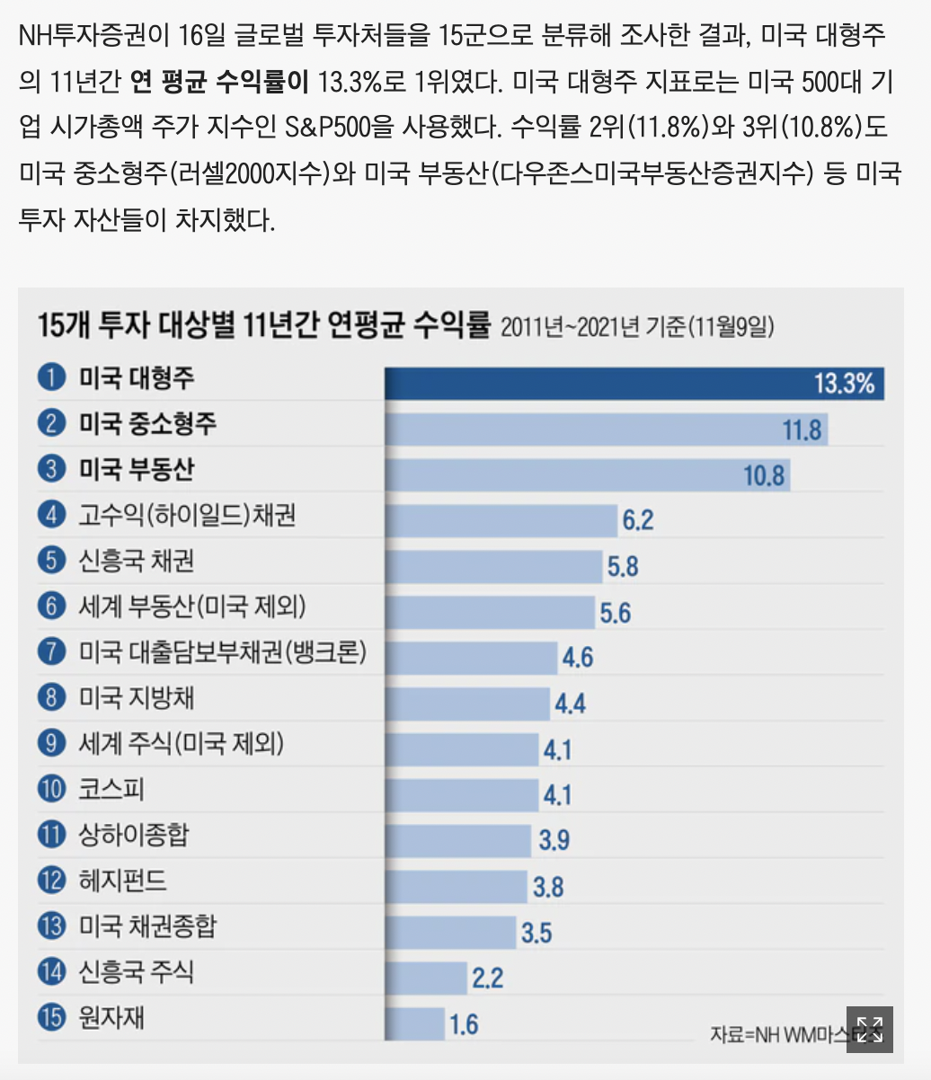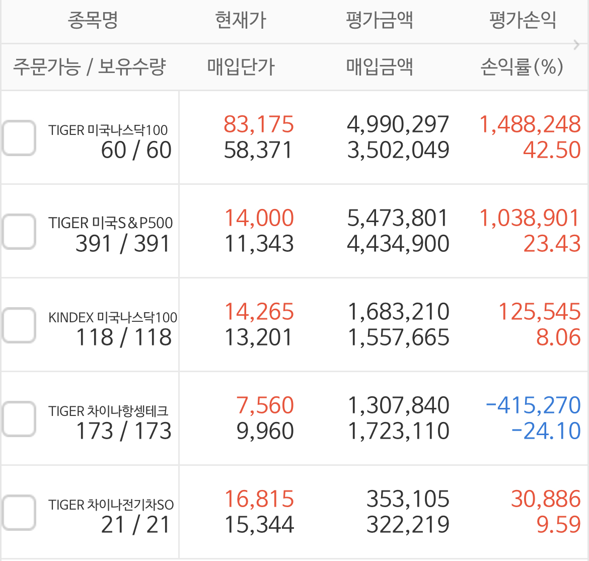 서대리 역시 이렇게 저렇게 투자를 해보고 다양한 정보를 얻어볼수록 결국 시장 자체에 투자하는 ETF가 평범한 직장인들에게는 가장 좋은 투자방법이라는 결론을 얻게 되었습니다. 여러가지 시장지수 중에서 서대리는 미국 S&P500과 나스닥 ETF를 선택했고 특히 제 노후를 책임질 개인연금과 퇴직연금 계좌는 S&P500과 나스닥 ETF 비중이 거의 80% 가까이 되고 있습니다.(현재까지 중국투자는 잘못된 선택)