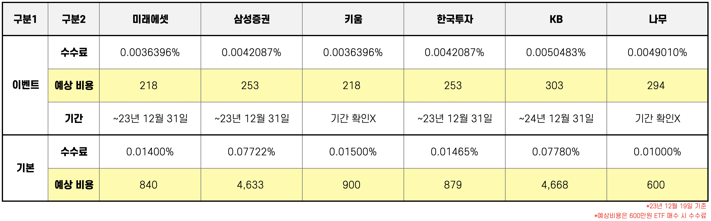 ETF 거래수수료와 이벤트를 정리해봤습니다